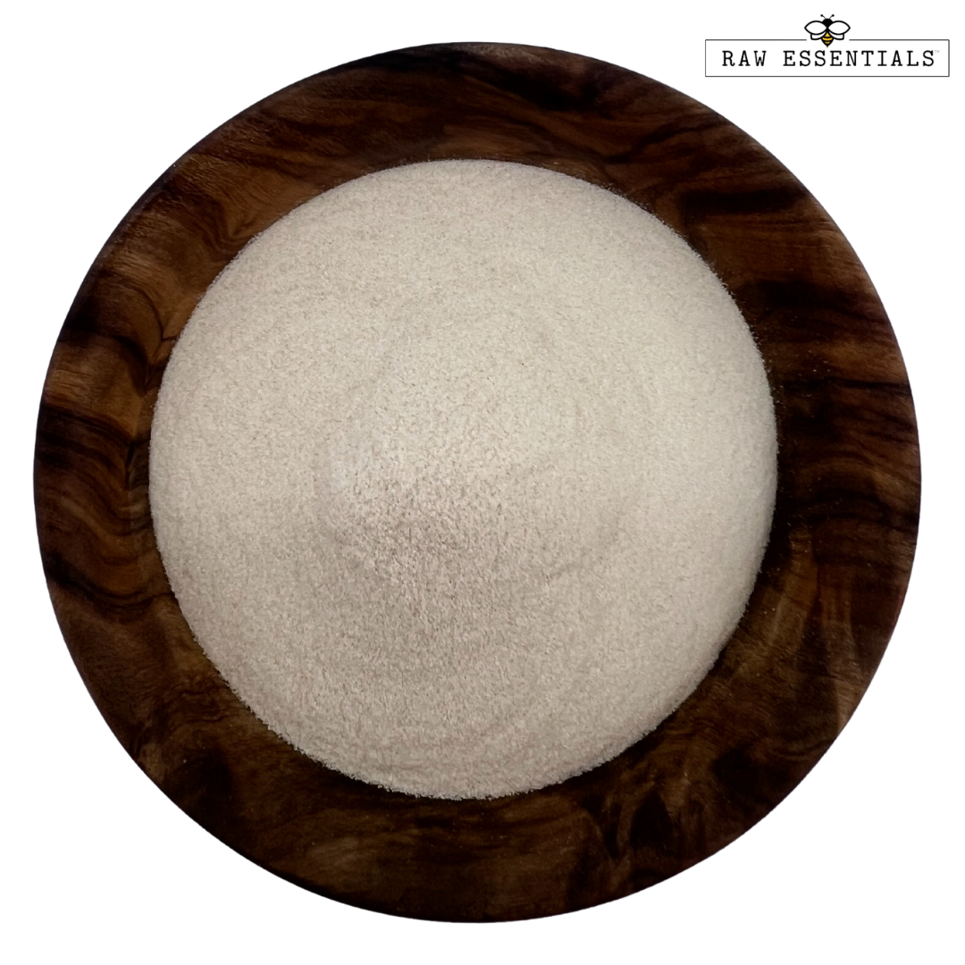 Uses: Jams, soups, ice creams and other desserts that need to set. Agar Agar needs to be dissolved in water or liquid then heated. It sets as it cools.