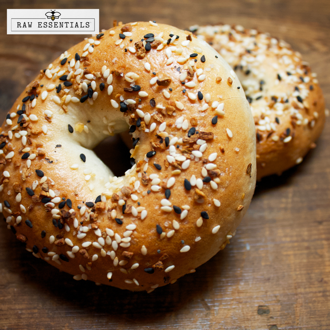 About: Raw Essentials Everything Bagel Spice Topping has it all – and we put it on everything! Try it in compound butter for your next grilled steak, on the rim of a Bloody Mary, on buttered popcorn or cottage cheese, and fancy up store-bought dips like hummus and guacamole, just as a start. Try Everything Bagel Spice Topping on cantaloupe for a poolside flavor explosion!