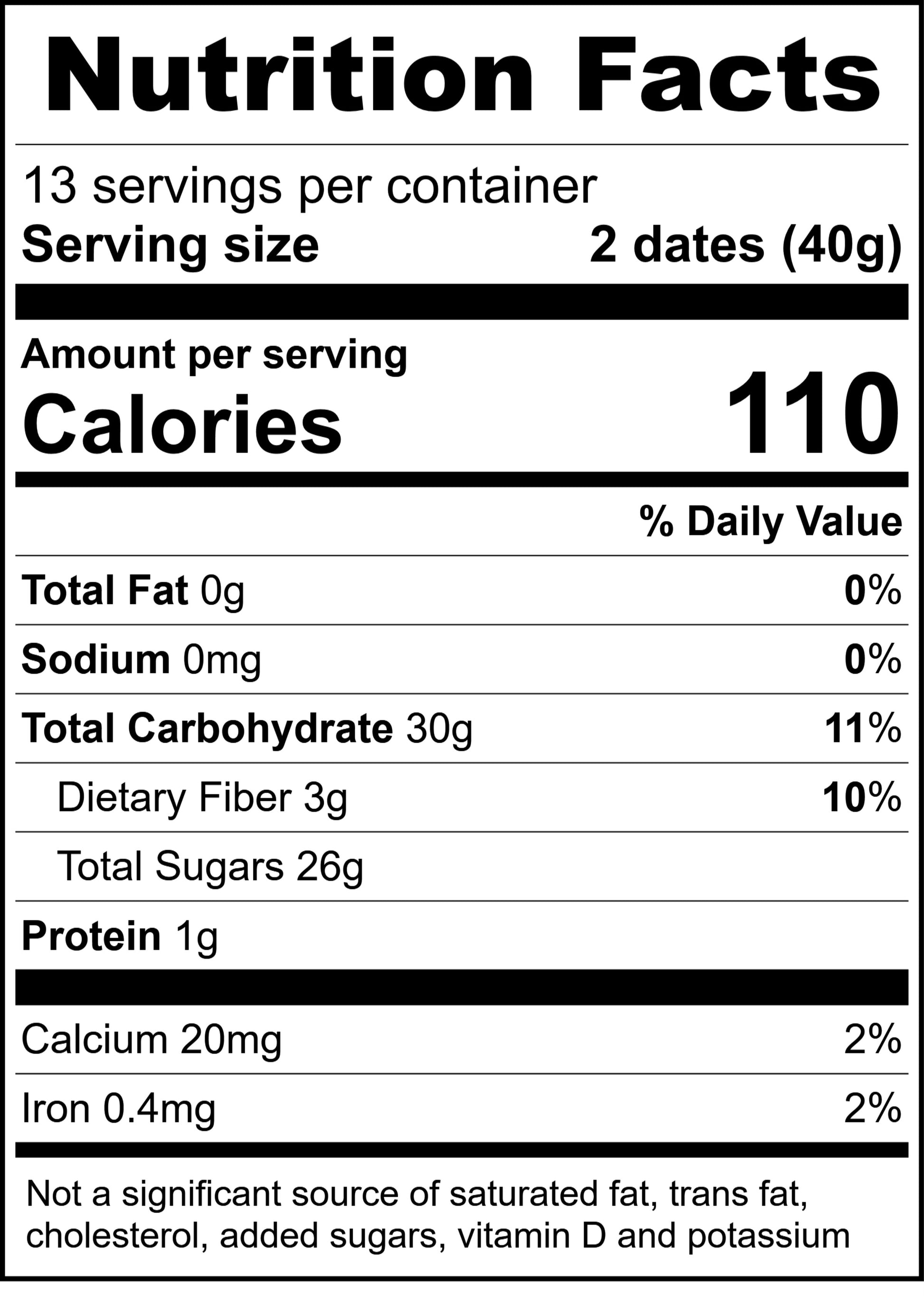 Ingredients: Medjool Dates. Warning: This Product Contains a Pit