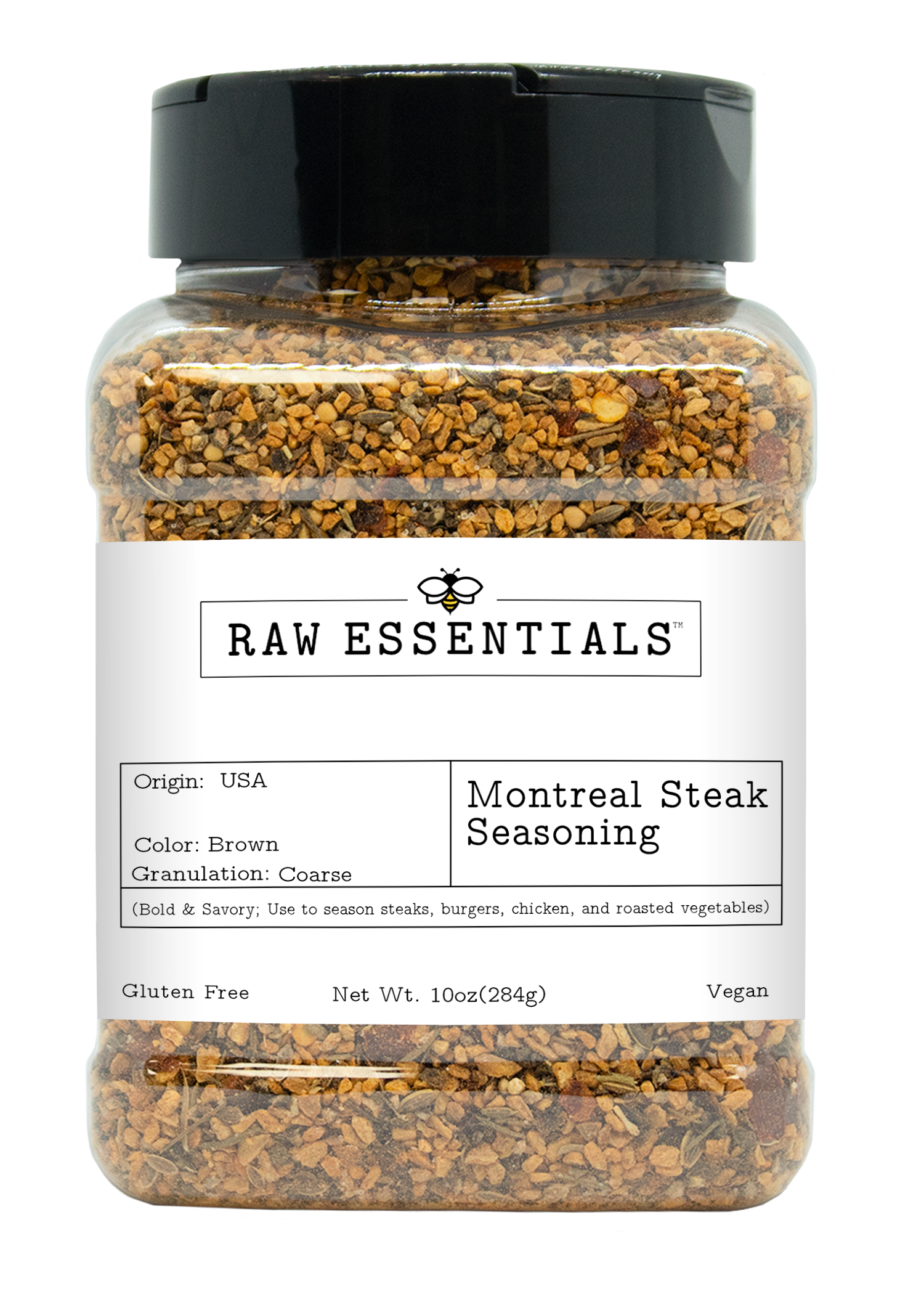 Raw Essentials Montreal Steak Seasoning is a gourmet house blend inspired by the classic flavors of Montreal’s famous smoked meats. Originally created as a dry rub for pastrami-style brisket, it has evolved into a North American favorite for steaks, ribs, and grilled meats of all kinds.