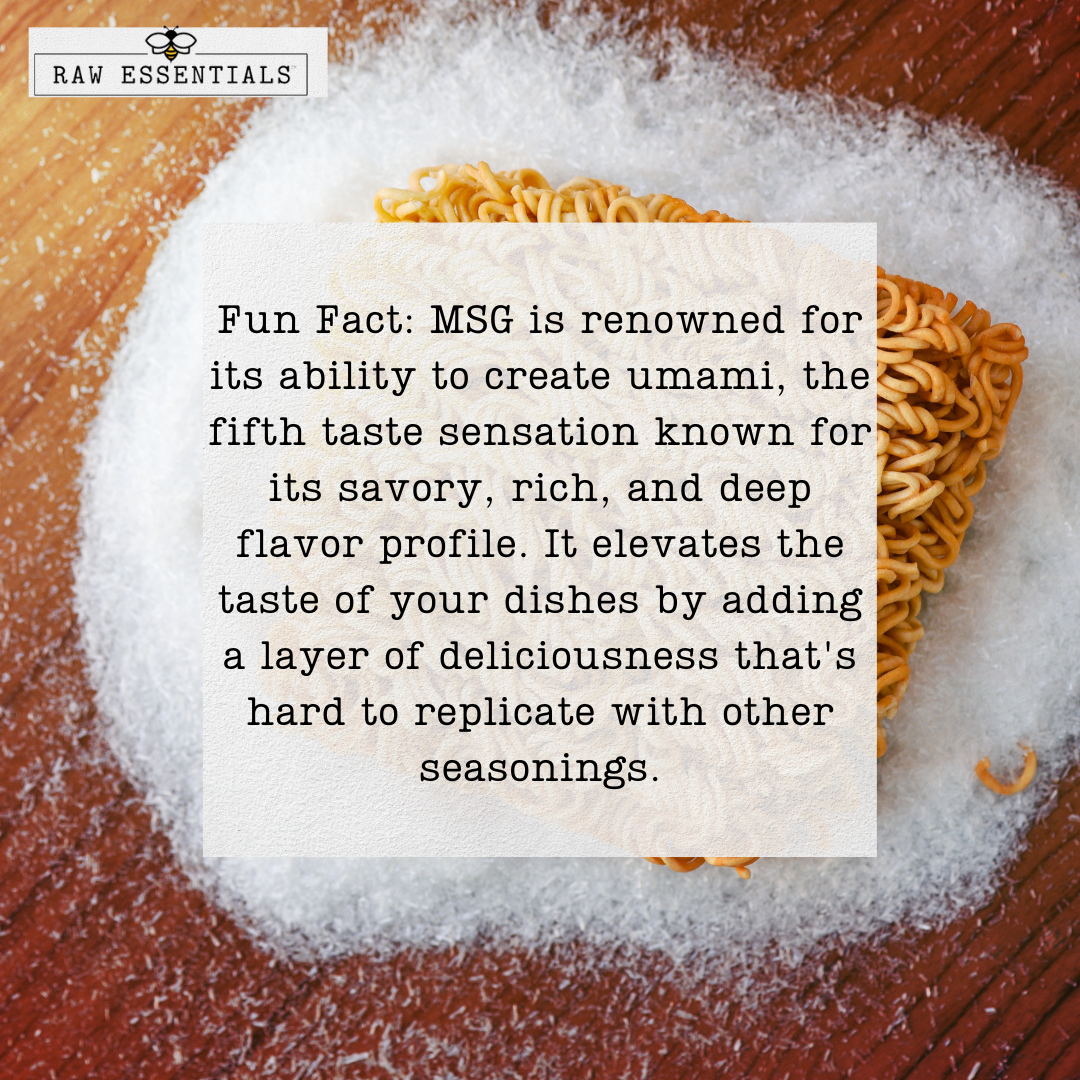 About: MSG or monosodium glutamate is a specialty spice that is a flavor-enhancing food additive derived from a natural glutamic acid found in seaweed and other vegetables. Adds a distinguishable umami flavor to a variety of dishes.