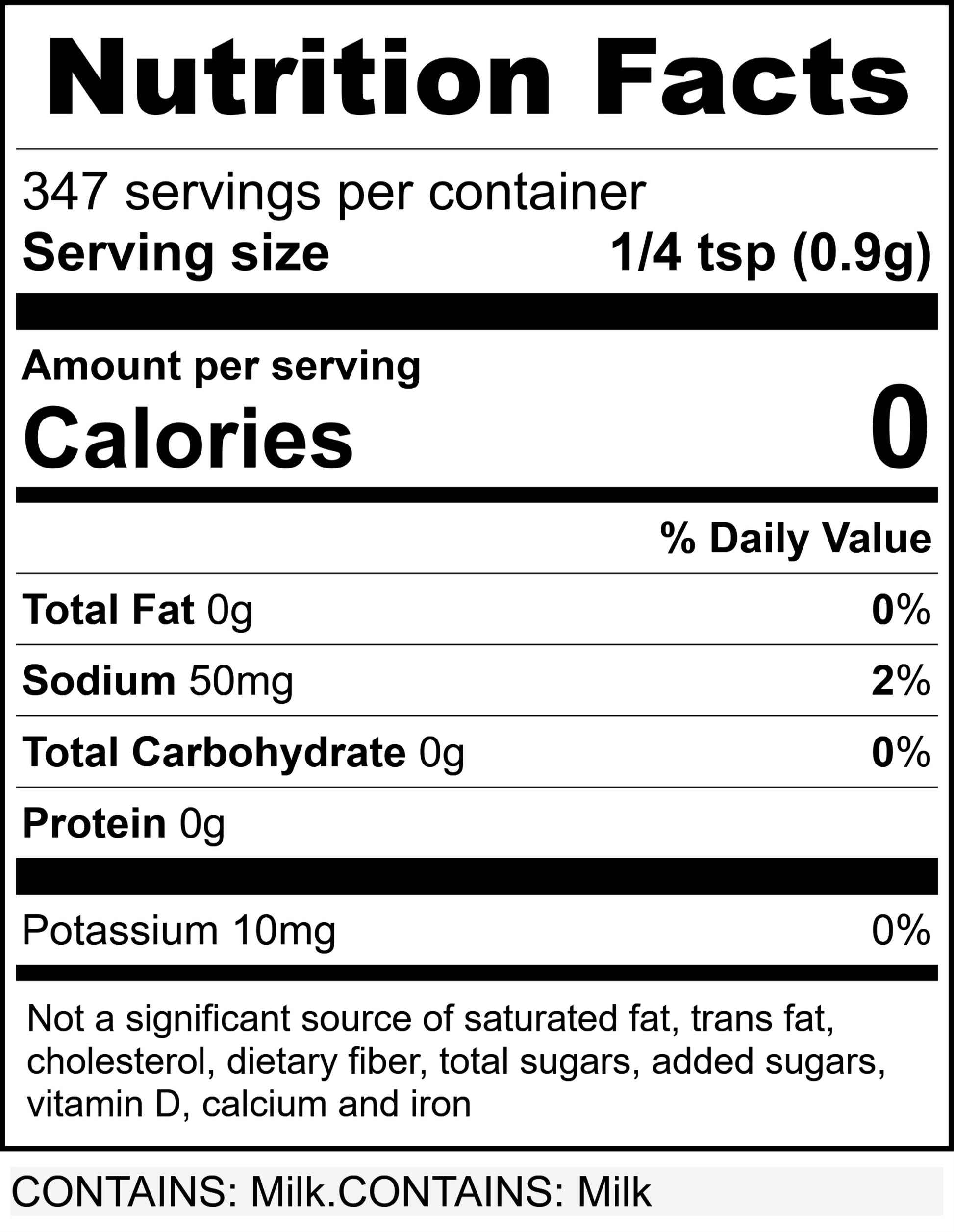 Ingredients: Buttermilk Powder, Garlic, Salt, Pepper, Maltodextrin, Corn Starch, Yeast Extract, Citric Acid, Spices, Guar Gum.