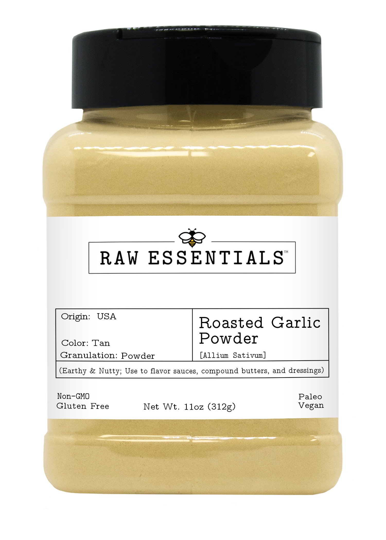 The roasting process transforms sharp raw garlic into a mellow, slightly sweet ingredient with warm umami depth. Its powder form makes it easy to incorporate into sauces, compound butters, marinades, rubs, and dressings without added texture. Perfect for both cooking and finishing, this versatile seasoning adds bold roasted garlic flavor to any dish.