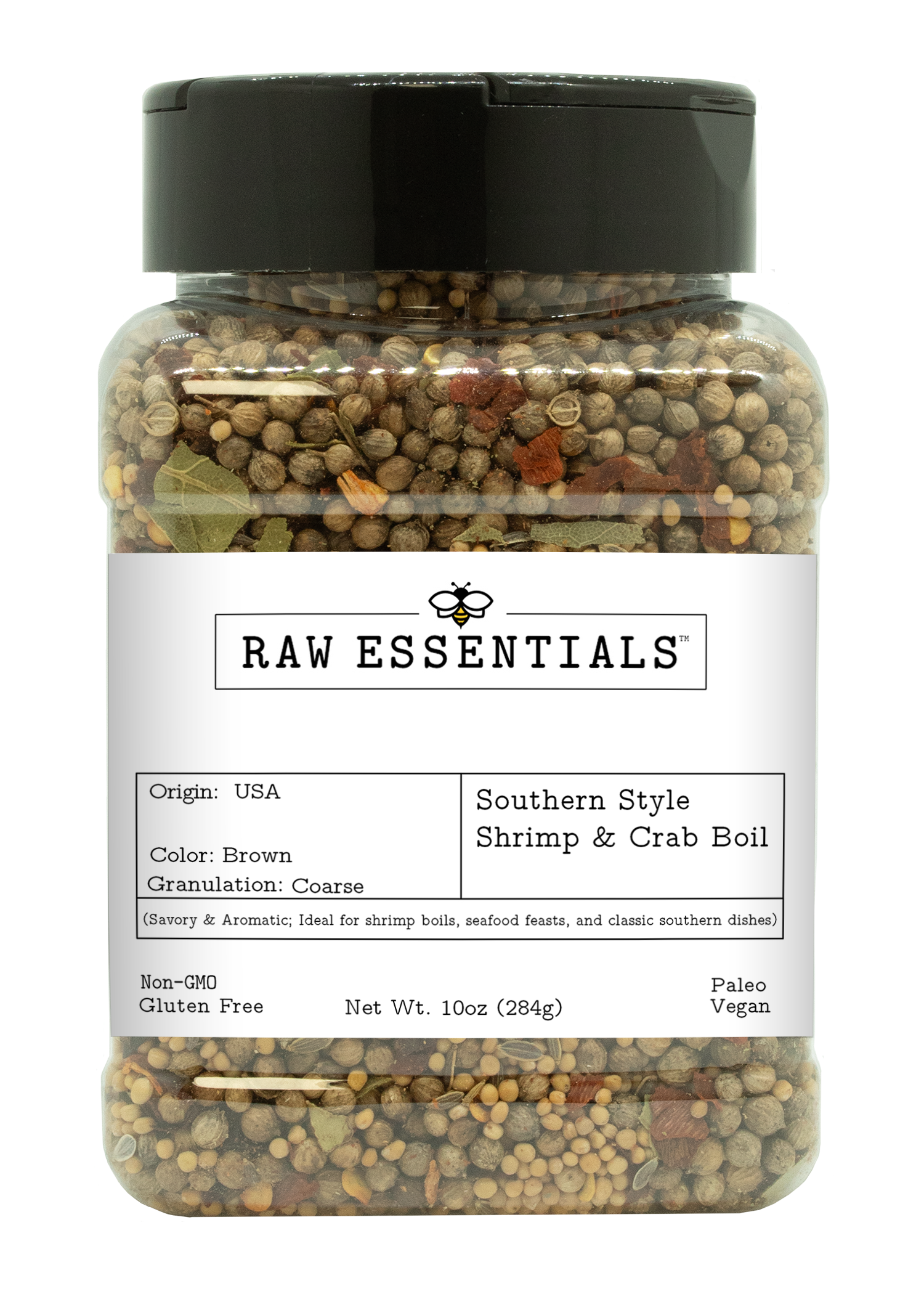 Bring classic coastal flavor to your kitchen with Raw Essentials Southern Style Shrimp & Crab Boil. This savory, aromatic blend delivers the bold, comforting taste of traditional seafood boils, making it easy to recreate shrimp boils, crab feasts, and low-country favorites at home.